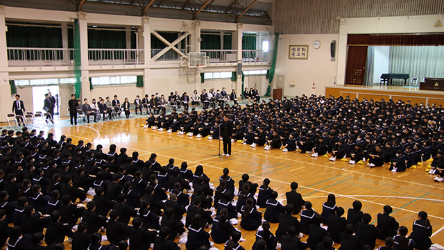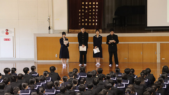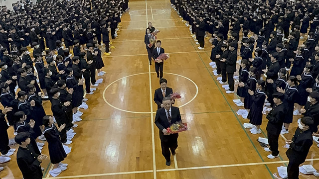 4月9日(水)、令和7年度離退任式・対面式が行われました。 離退任された先生方からの生徒に対する愛あふれるメッセージに、胸があつくなりました。 新たな場所でも先生方らしく輝かれますように、心から応援しています。 本当にありがとうございました! 生徒会主催で行われた対面式では、生徒会長の後藤くんから歓迎の言葉が贈られ、1年生からは羽野さんが新入生代表の言葉を述べてくれました。新2・3年生全員で校歌と学生歌を歌い、朝倉高校の紹介を行いました。