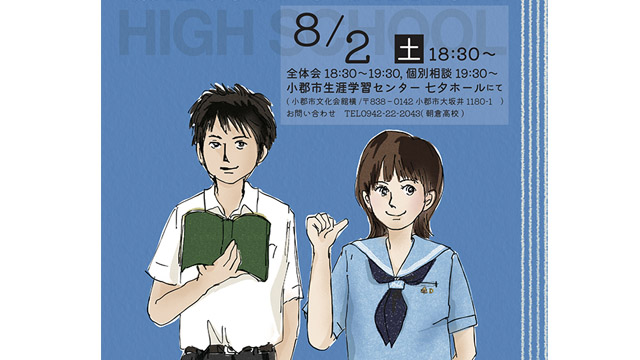 8月2日(土)夕方18:30より、小郡市生涯学習センター 七夕ホールにて小郡学区対象の朝倉高校学校説明会を行います。