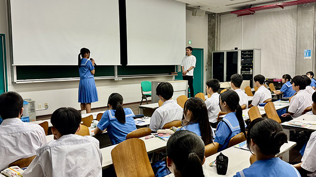 高等教育段階におけるデジタル等成長分野を支える人材育成に向けて、校内でも様々な事業を進めています。その取り組みの一環として、8月20日(水)、1学年が大学で講義を受け、最先端の情報技術について学びました。