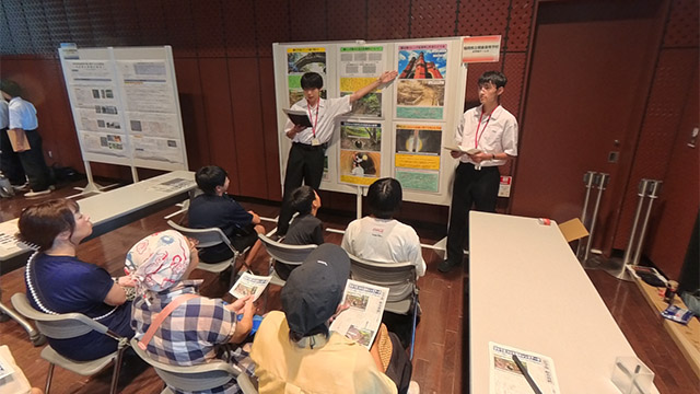 8月2日(土)には九州国立博物館で開催された「全国高等学校歴史学フォーラム2025」に出場しました。これは、一次審査を突破した高校が出場する全国大会です。今年は、30校近くが応募し9校が出場しましたが、朝倉高校史学部は昨年に続き唯一の2チーム出場を果たしました。チームAは、数年来調査研究をしている嘉麻市馬見地区における為朝研究の最新成果を、チームBは1年生チームで、高校近くの甘木公園で見つけた謎のレンガアーチ建築物についての調査結果を報告しました。チームAは、調査地域の様子が詳しくわかるように、今回はじめてVR機器活用による360度動画を導入し、会場で多くの方に体験していただき、好評価をいただきました。特に、高齢の方々は大きな驚きを持って見入る方も多く、VR活用による「わかりやすく新しい地域探究」の実践に成果を感じることができました。九州国立博物館での発表は前日の1日(金)に西日本新聞の朝刊で大きく取り上げられたため、新聞記事を見て興味を持ち来てくださる方や、「毎年史学部の発表を楽しみに来ているのよ」と言われる卒業生の方もお見えになり、気の引き締まる思いでした。
