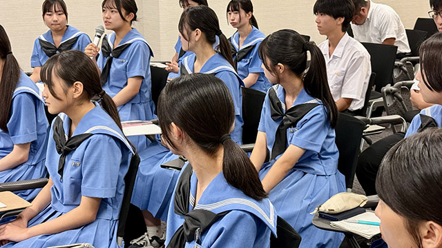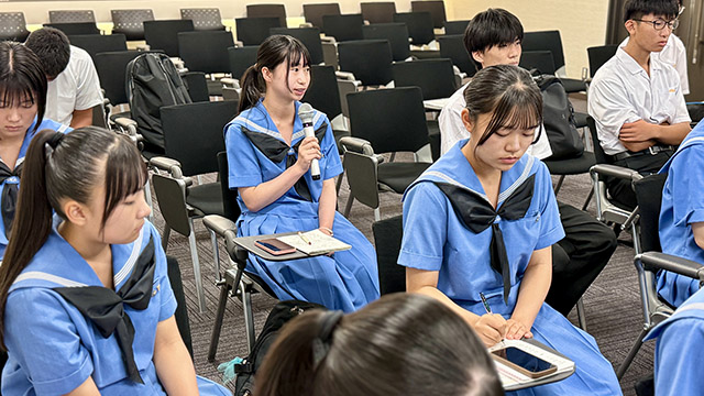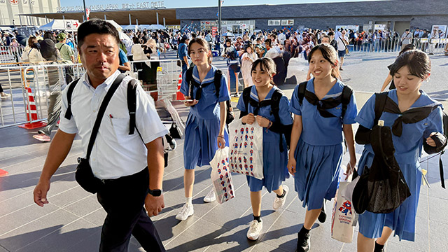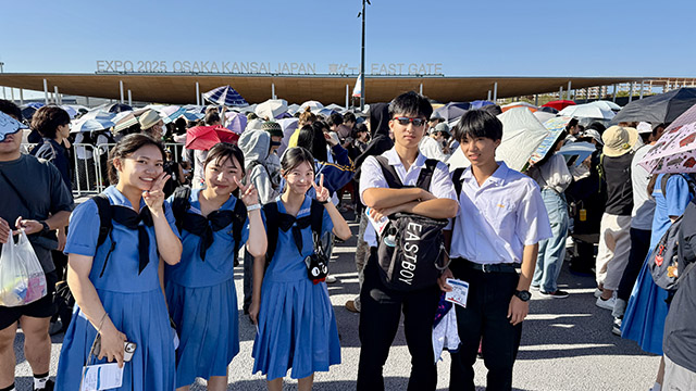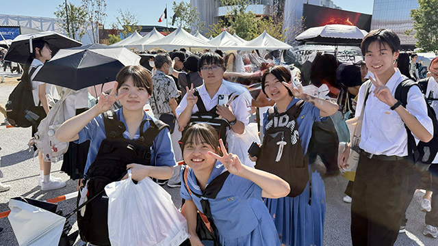 2日目の大阪万博では、人の多さに圧倒されましたが、他国の文化や思想、技術について学び、閉幕前の貴重な体験となりました。夕食後のOB・OG講演、懇談会では、各業界で活躍する先輩方や現役大学生との交流をとおして多くの刺激を受け、終了後も興奮が覚めない様子でした。