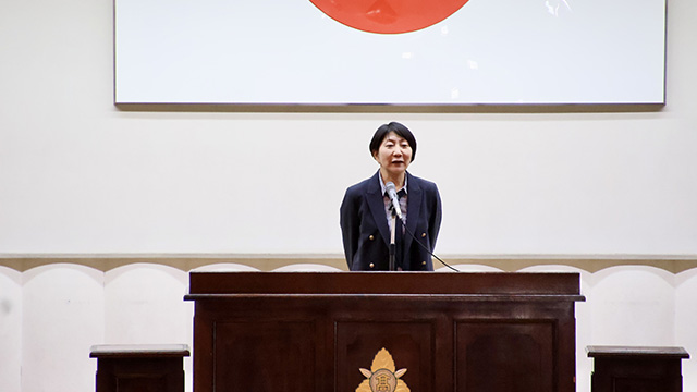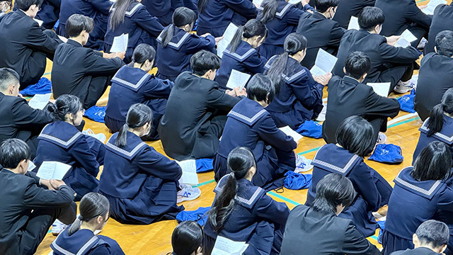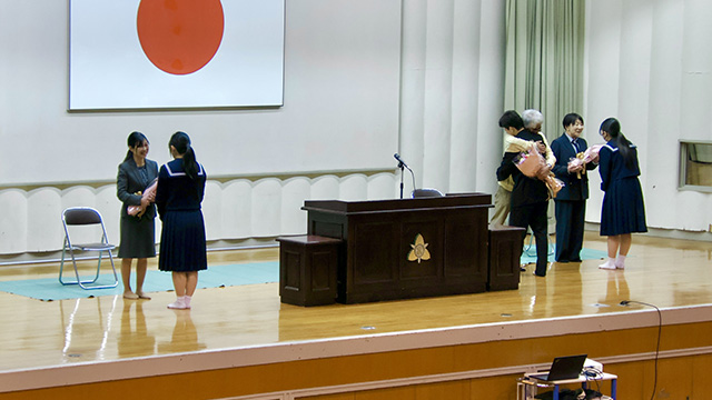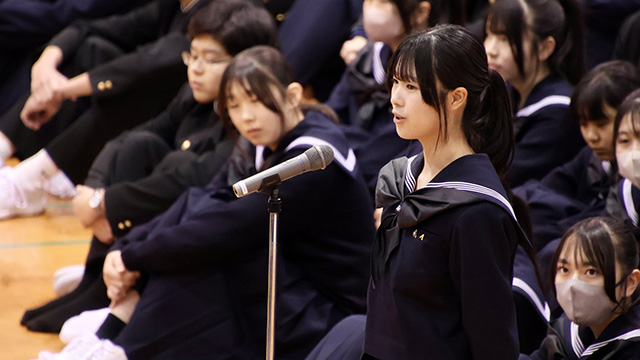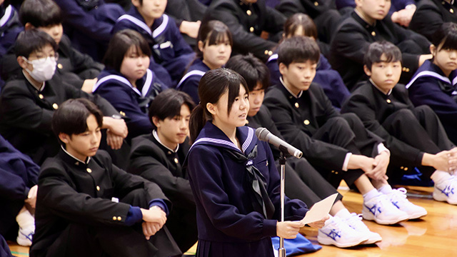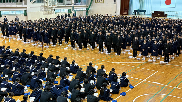 4月8日(水)、令和8年度離退任式ならびに生徒会による対面式が行われました。 これまで本校を支えてくださった先生方とのお別れに、感謝と寂しさがあふれる時間となりました。新たな場所でも先生方らしく輝かれますように、心から応援しています。 本当にありがとうございました! 生徒会主催で行われた対面式では、生徒会長から歓迎の言葉が贈られ、新入生代表の生徒が挨拶を述べてくれました。新2・3年生全員で校歌と学生歌を歌い、朝倉高校の紹介を行いました。