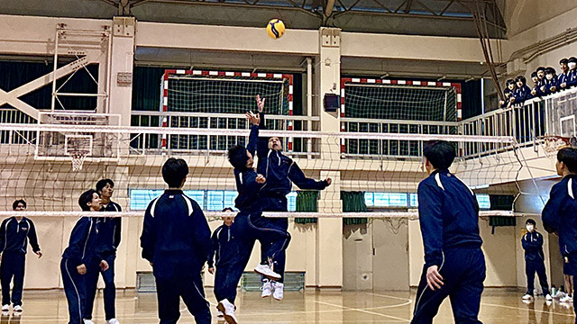 令和8年3月17日(火)、春季クラスマッチが行われました。 晴天に恵まれ、絶好のクラスマッチ日和でした。 1年生は体育館でバレーボール、2年生はグラウンドでソフトボール(男子)とドッジボール(女子)で戦いました。今年度最後のクラス対抗行事で、一年間をともに過ごしたクラスメイトへの応援の声もひときわ大きく、白熱した試合が繰り広げられていました。 優勝チームの皆さん、おめでとうございます。