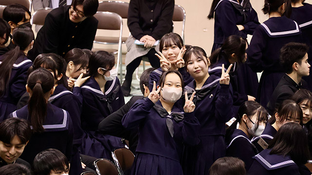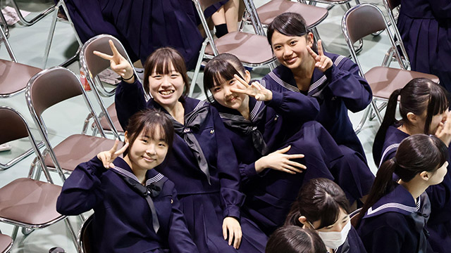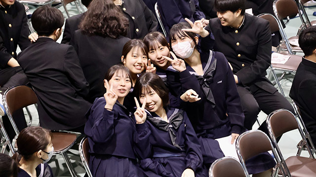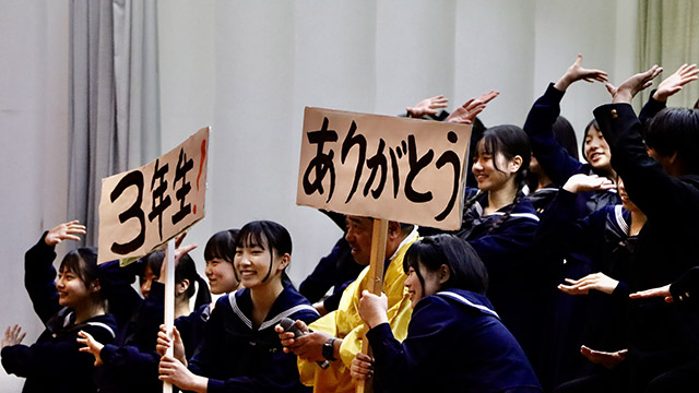 令和8年2月27日(金)、朝倉高校の恒例行事「予餞会」が行われました。 卒業を目前に控えた3年生へ、1・2年生の有志の皆さん、そして各部活動の後輩たちから感謝と激励、送別の想いを込めたエールが贈られました。 受験に向けて日々努力を重ねてきた3年生も、この日ばかりは心から楽しそうな笑顔を見せてくれました。 3年生の皆さん、いよいよ新たなステージへ。これからの活躍を心から応援しています。