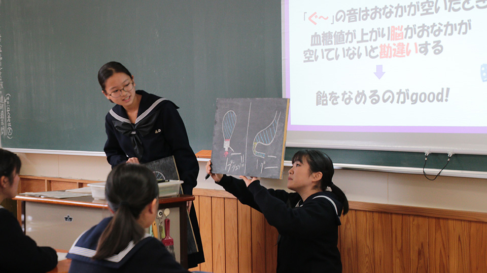 現在、1・2年生は課題研究を行っています。関心のあるテーマの課題について自分たちで仮説を立て、原因を分析し、具体的な解決策を考えました。中間発表は2年生が行い、1年生は質問や意見を活発に述べていました。約半年間の研究の成果を、更に深めてくれることでしょう。