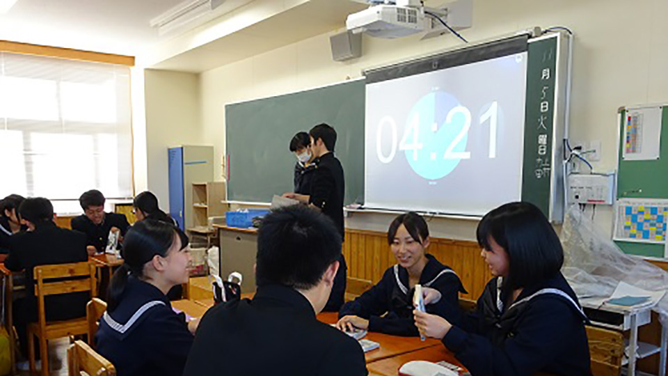 お気に入りの本を6名1グループになり、5分間で紹介する「ビブリオバトル」を開始しました。 生徒たちは自分なりにあらすじをまとめ、読んでほしいポイントなどを楽しそうに語っていました。思わぬ人がこんな本を読むんだ!という驚きもあり、本を通じてさらに生徒の様々な姿が垣間見えました。
