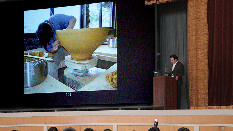 2017年57歳という若さで、重要無形文化財「小石原焼」の保持者として認定された福島善三さんに本校にお越しいただき、貴重なお話をしていただきました。 実際の陶芸の様子や陶芸家としての心構え、特に様々な経験を自ら進んで様々なことを経験する大切さについてのお話が生徒たちの心に響いたようです。