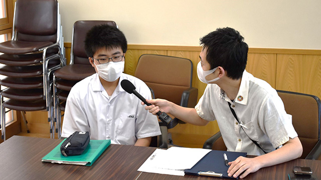先日毎日新聞に掲載された史学部の記事を見たのがきっかけで、本校でインタビューが行われました。軽快なテンポでインタビューは進み、石橋のこと、史学部のこと、今後のことなどが話題になりました。最後は中原(2年:三国中出身)のリクエストコールで終わり、和やかな雰囲気のなかで取材が行われました!