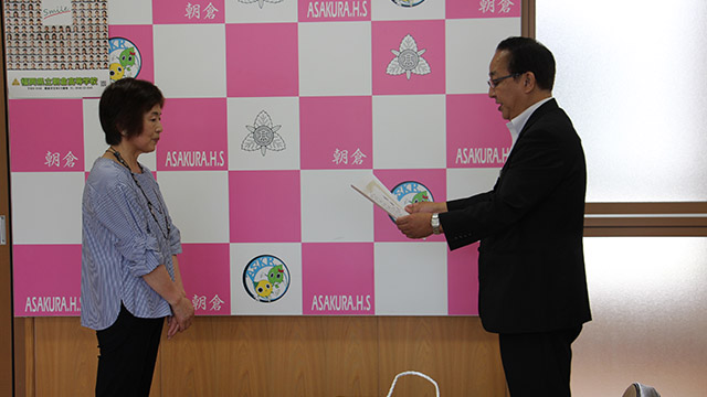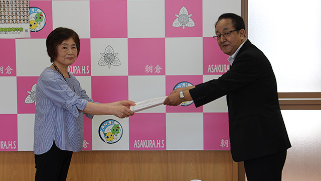 同窓会の支援により更地工事も終了し、6月29日(月)に本校応接室にて感謝状を贈呈させていただきました。