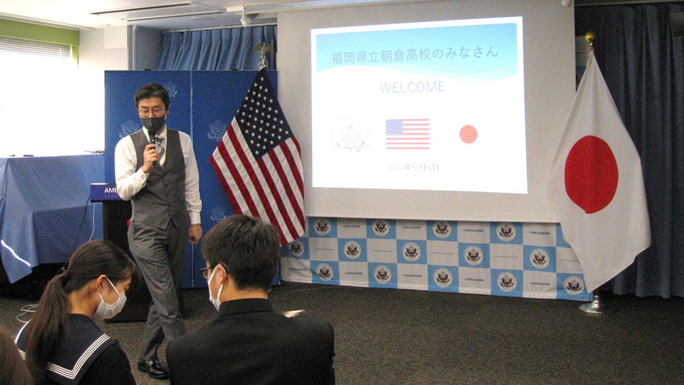 12月9日(水)午後 バス2台に分乗し、天神の在福岡米国領事館 福岡アメリカンセンターに行きました。