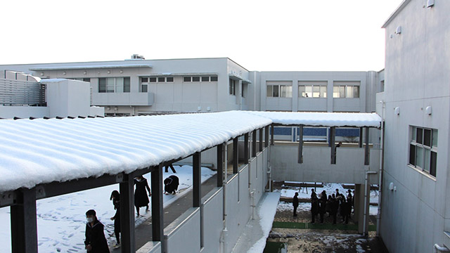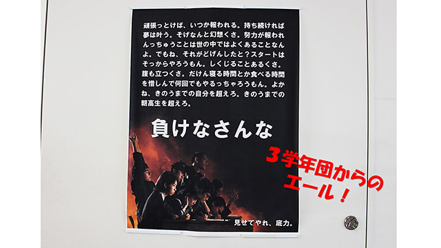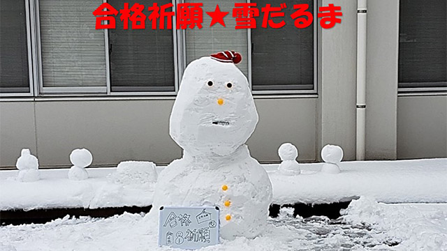 解けきれない雪が残ったまま、連休明けの1月12日(火)、令和2年度第3学期がスタートしました。3年生は今週末いよいよ大学入試共通テストです。学校の中庭には2年生の生徒作の応援雪だるまが出現し、3学年先生方からのポスターも貼られ、朝高生の底力を見せるときが近づいて来ました。