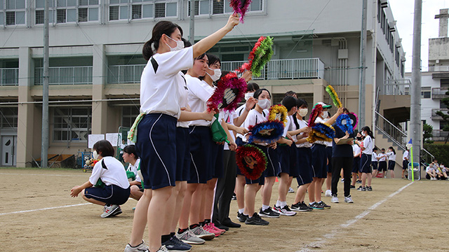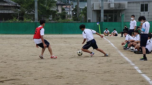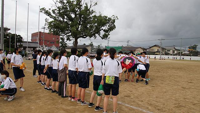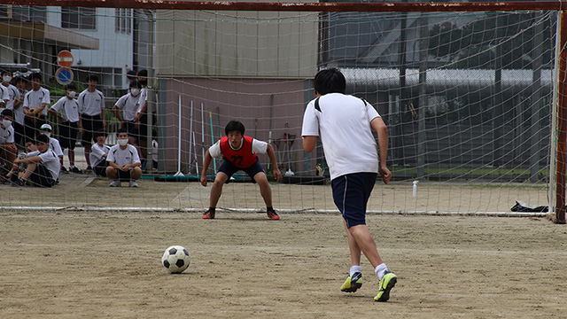 7月7日(水)、令和3年度夏季クラスマッチを実施しました。 サブグラウンドでは1年生がドッジボール、体育館では2年生がバレーボール、グラウンドでは3年生がサッカーを行いました。時折小雨のちらつく中、クラスの応援で雨雲を吹き飛ばし、各所で優勝をかけた熱戦が繰り広げられました。