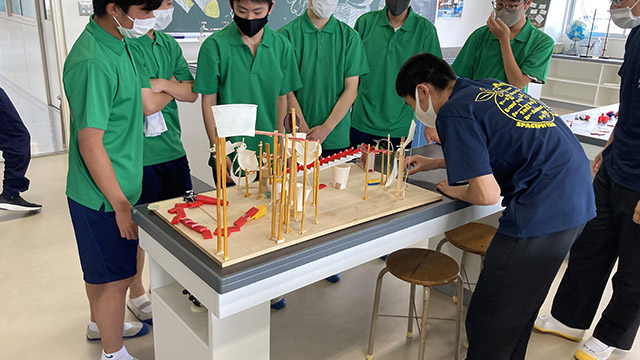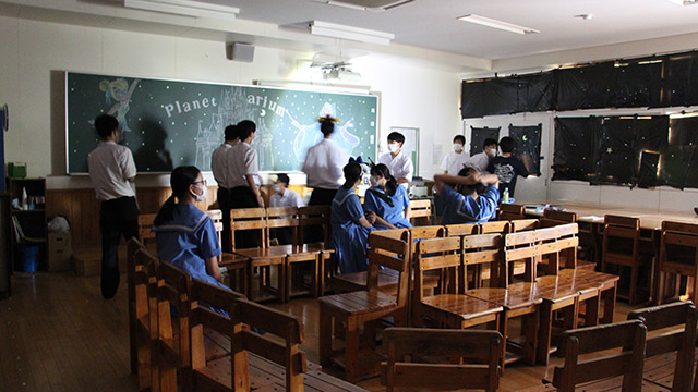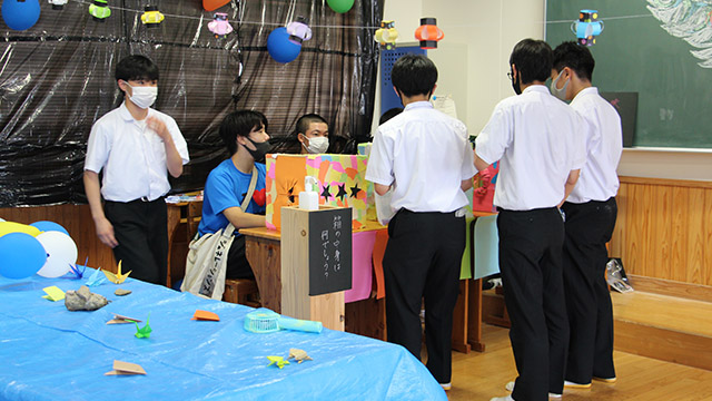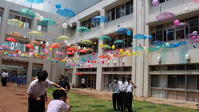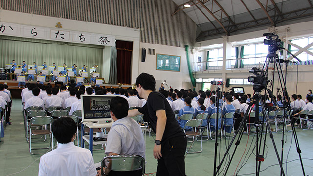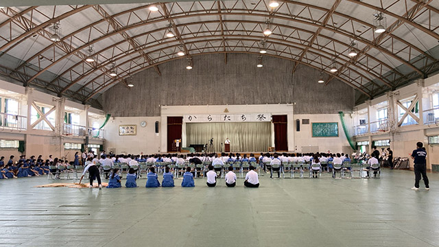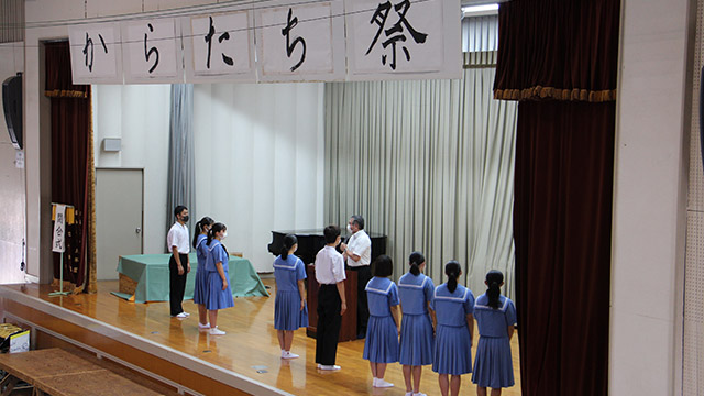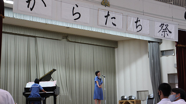 例年では6月に実施してきたからたち祭ですが、コロナ禍の緊急事態宣言もあり延期することを決め、7月15日(木)に無事開催することが出来ました。限られた準備期間の中、各所で知恵を出し合い、2年ぶりとは思えない見応えのあるからたち祭となりました。当日、体育館ステージの様子は、1、2年生の教室にもリモートで生配信され、教室からもしっかり歓声があがっていました。