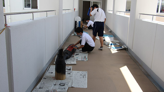 開会に先立って、九州大会に出場する水泳部とインターハイに出場する総合部(少林寺拳法)の部活動壮行会が行われ、全校生徒よりエールを送りました。