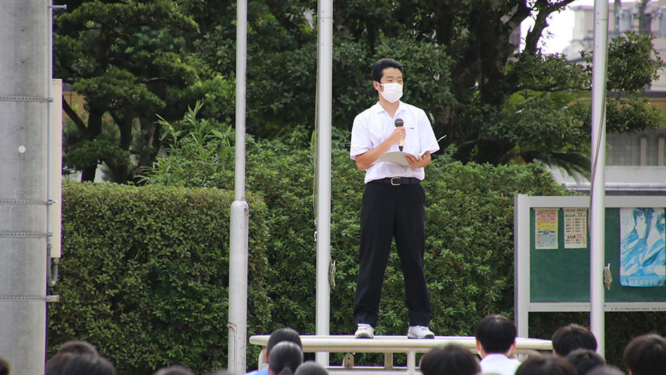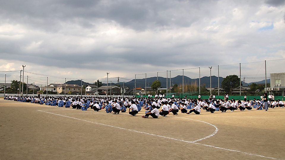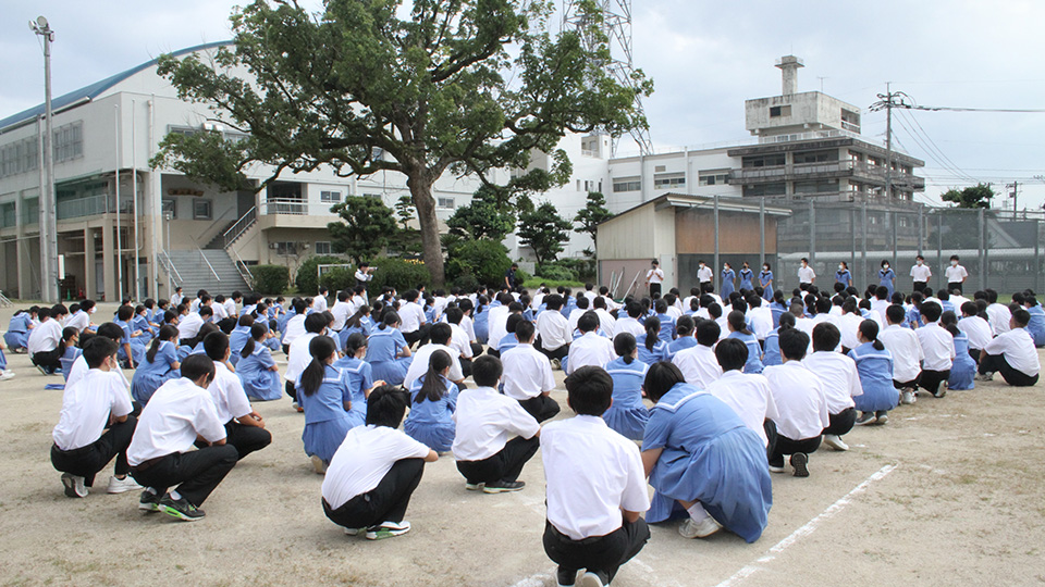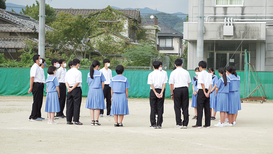 令和3年9月4日(土)に開催予定だった第64回体育祭は、緊急事態宣言発令により9月17日(金)に変更となり、その後さらに宣言延長されたことで、開校以来初の開催中止ということになりました。 先の動きが見えない中、体育祭実行委員をはじめ各ブロックのリーダー達は、今出来ることを着実に進め、指示を出し、その背中を後輩たちはしっかり見ていたのではないかと思います。 解団式では、伝統をつなぐ意味も込めて、ブロックごとに集まり、1、2年生へ次年度に向けた思いを伝えました。