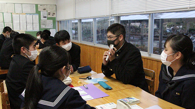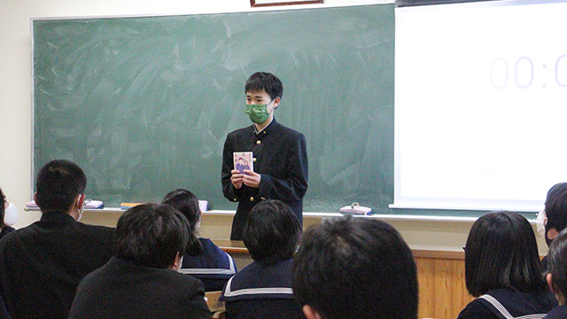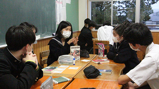 11月30日(火)、書評合戦「ビブリオバトル」が1・2学年で行われました。 それぞれが自分の好きな本を持ち寄り、自分がいかにこの本が好きか、面白いかを4分間熱く語りました! 写真からもバトラーの話に気持ちが引き込まれ、本を囲んで盛り上がっている様子が伝わってくるでしょう。 来年はクラス対抗ビブリオバトルを行い、学年のチャンプ本を決定したいです!