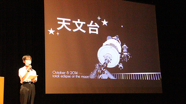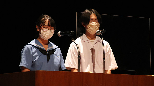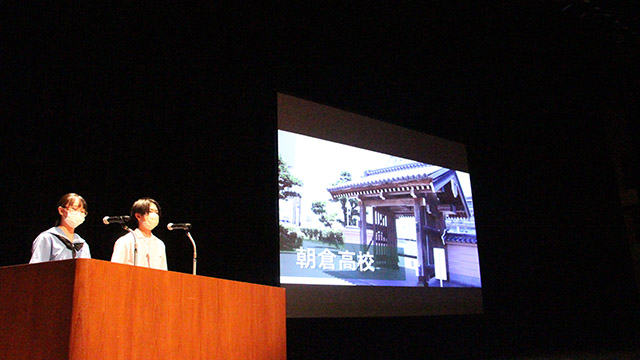 今年度は朝倉高校が開催の主幹校となっておりましたので、司会進行は本校放送部が行い、開式・閉式の挨拶は本校生徒会長が行いました。