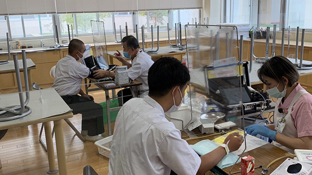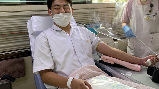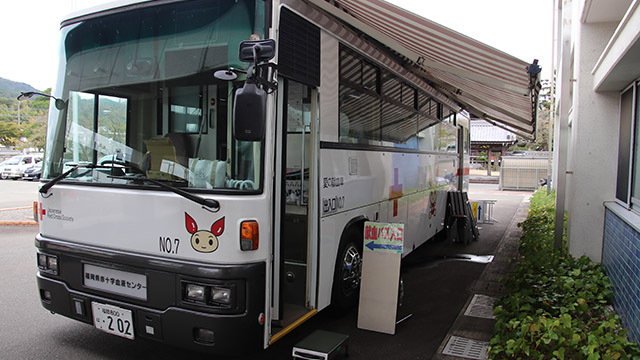 10月6日(木)、本校正面玄関前に、献血バスがやってきました。献血は命のボランティアと言われ、高校生にも出来る社会貢献です。 朝倉高校では、毎年学内献血を実施しており、今年は29名の皆さんが献血に協力してくれました。 献血に参加した皆さんは、不思議とニコニコ笑顔に包まれていました。