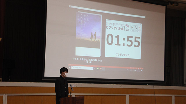 2年生は10月18日(火)、1年生は11月1日(火)に、クラス内でビブリオバトル予選会を行い、代表発表者となった計12名が決勝戦へ挑みました。