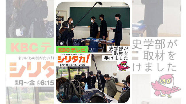 先日、史学部がKBCテレビ『シリタカ』さんの取材を受け、テレビでお馴染みのリポーターの石井さんと取材スタッフの方々が朝倉高校へ来てくださいました。 放送日は、3月中旬の予定です。また決まり次第お知らせいたします!