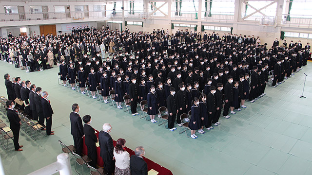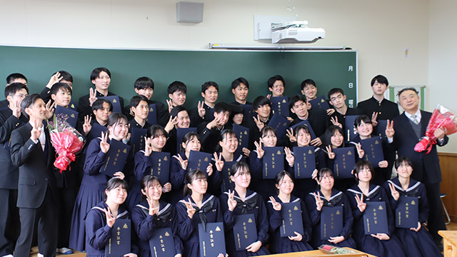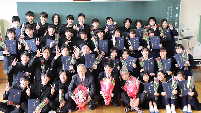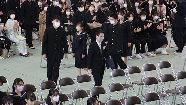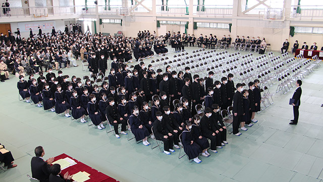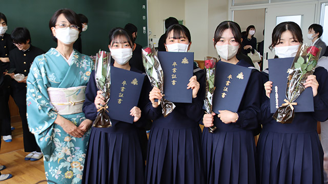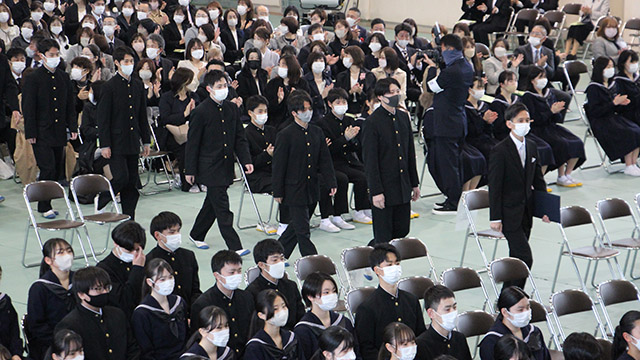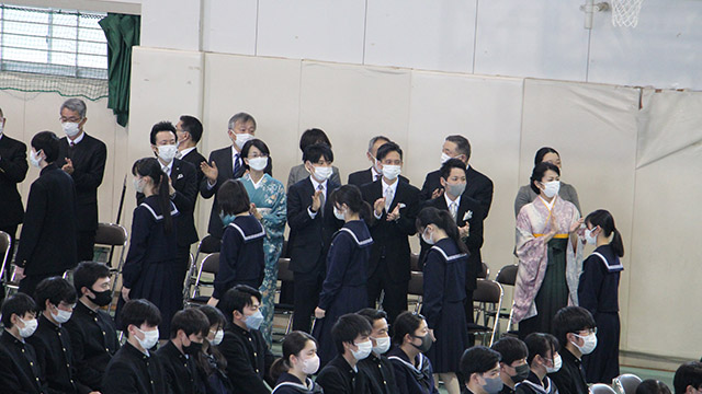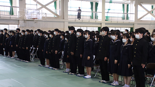 令和5年3月1日(水)、全日制課程224名、定時制課程11名の生徒が本校を卒業しました。 コロナと共に始まった高校生活。色々な制限や予定が定まらないことも沢山でした。 3年間で数えるほどしか歌うことのなかった校歌。 卒業式の最後に、皆で揃って歌う校歌斉唱は、胸が熱くなりました。 進む道は様々ですが、いつまでも母校・朝倉高校を誇りに、これからの活躍、心から応援しています。 ご卒業おめでとうございます。