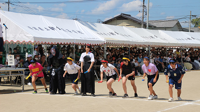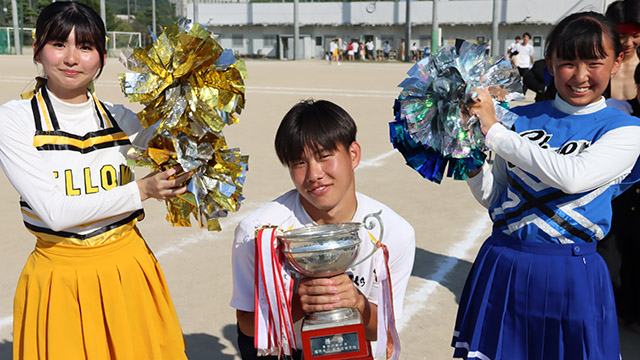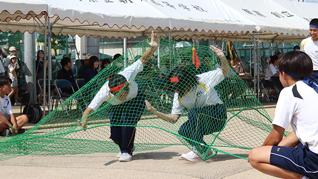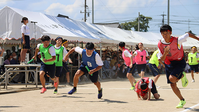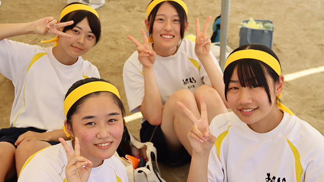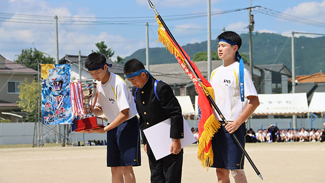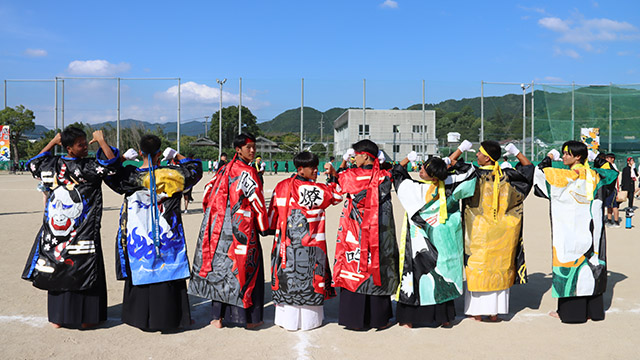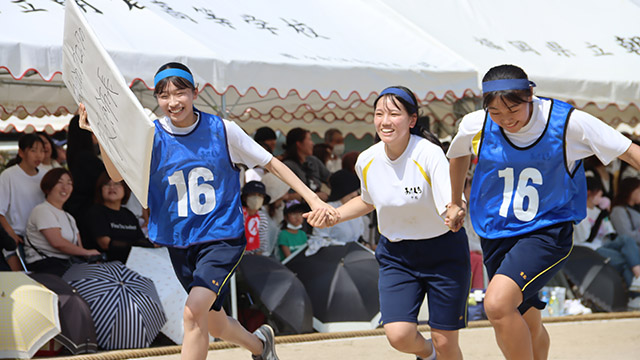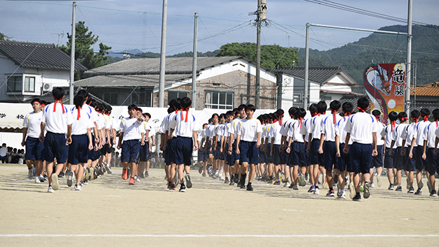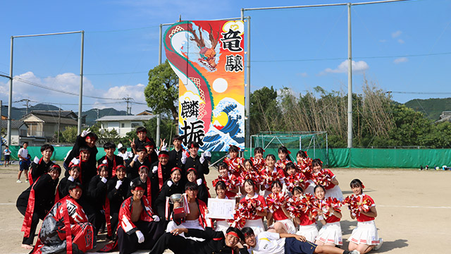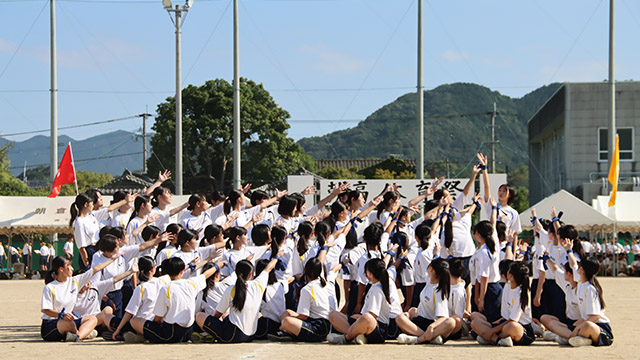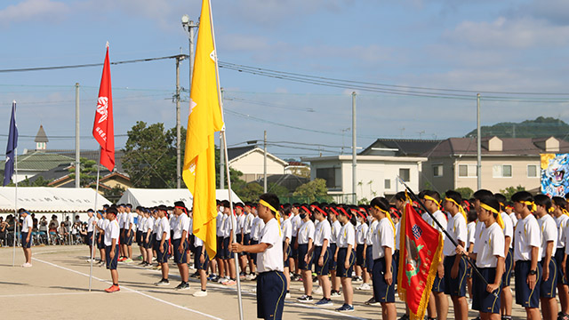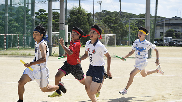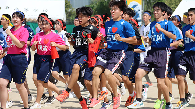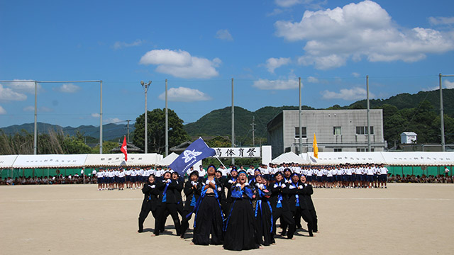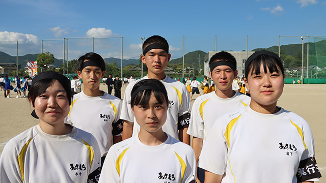 9月9日(土)、快晴のもと第66回朝高体育祭が開催されました。今年のスローガンには、一人ひとりが自分の長所を生かし未知の才能を開花させ、体育祭を通して頑張りや努力が輝けるようなものにしていきたい、これからの朝倉高校を新しく作っていきたい、という実行委員の想いから『一閃』と『爛漫』という言葉を組み合わせて設定されました。