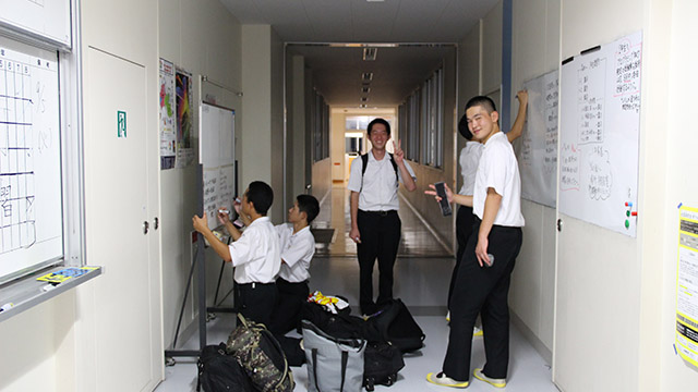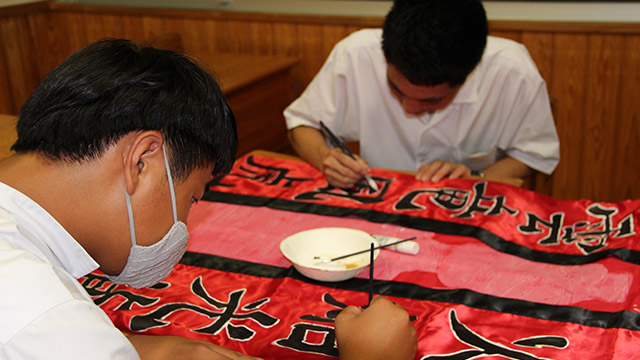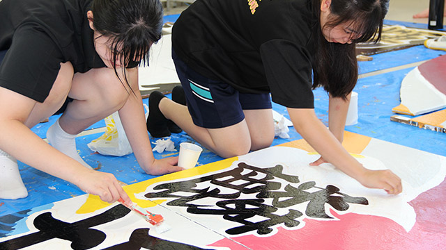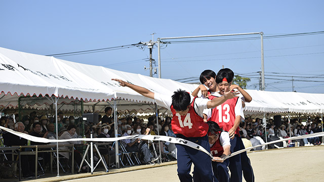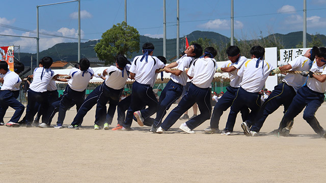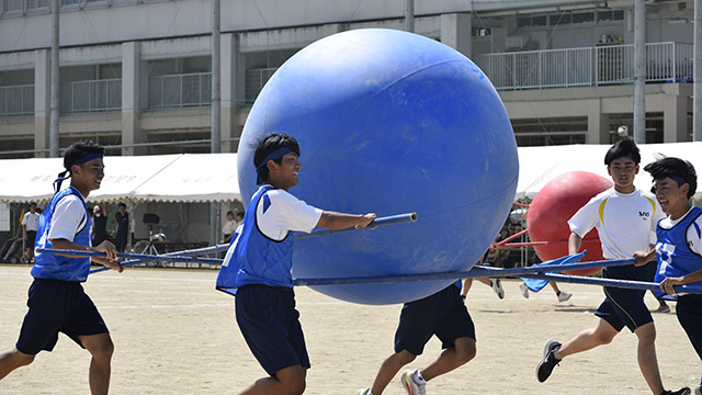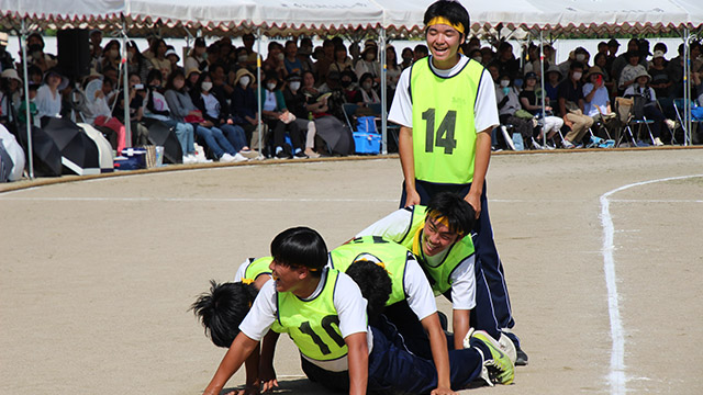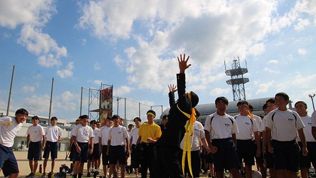 朝高の体育祭は生徒主体で作りあげられる体育祭です。練習・準備は各ブロック長がリーダーとなり、体育祭実行委員長が全体の指揮を執り、本番をむかえます。