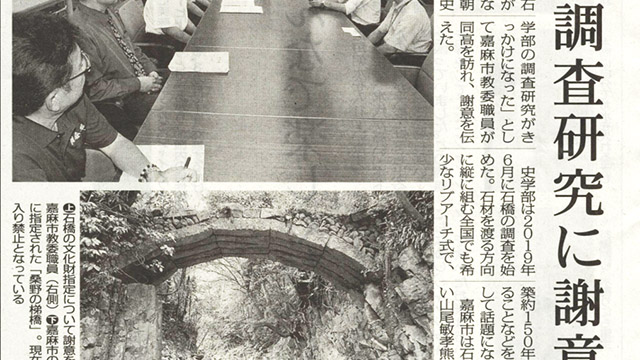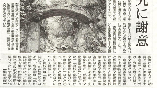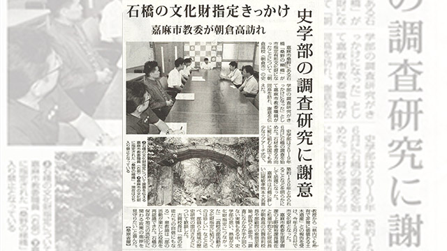 史学部が4年前に調査研究し、発表会でその文化的・歴史的価値や文化財指定の必要性を指摘していた嘉麻市のリブアーチ型石橋が、ついに今年の5月に市指定有形文化財になりました。