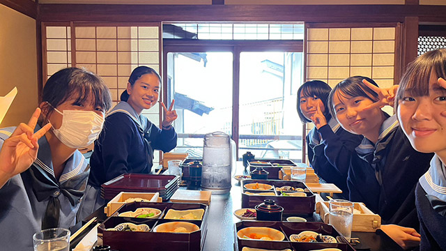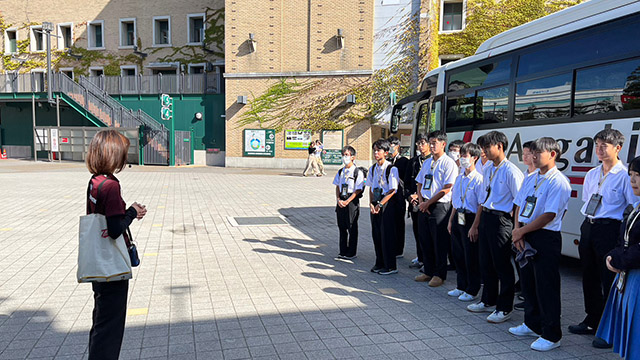 二日目には近畿朝倉同窓会会長の井上様、岡崎様、手柴様にアテンドしていただきました。また、夜には卒業生の中野さん(74回生 同志社大学)、矢野さん(74回生 同志社大学)、長島さん(75回生 大阪大学)、梶原君(75回生 同志社大学)に訪問していただき懇談会を開催しました。