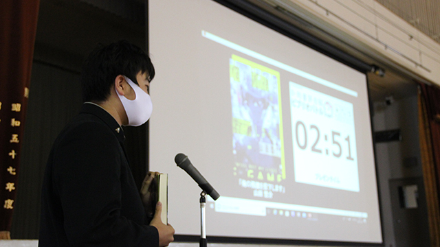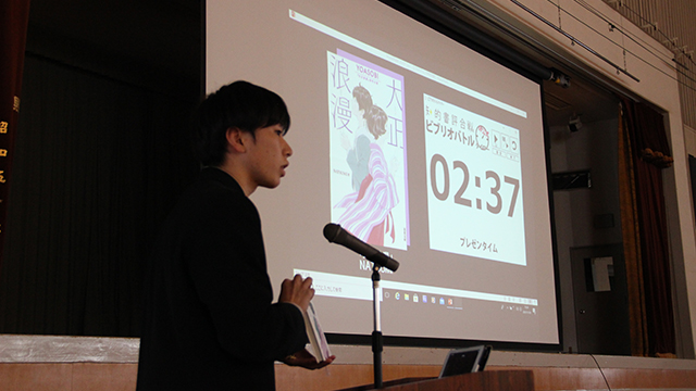 事前に各クラスでビブリオバトル予選を行い、クラスチャンプ本を獲得した12名が決勝戦へ挑みました。
