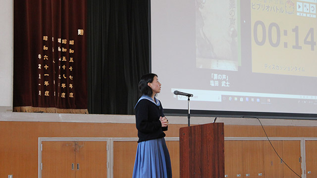 事前に各クラスでビブリオバトル予選会を行い、クラスチャンプ本を獲得したクラス代表12名が決勝戦へ挑みました。