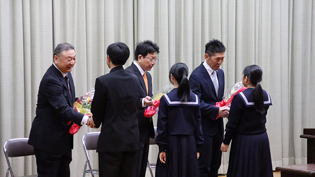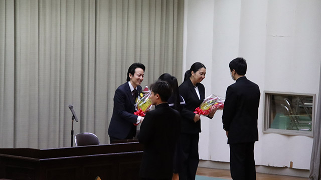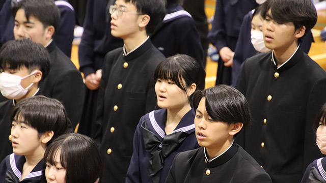 4月9日(水)、令和7年度離退任式・対面式が行われました。 離退任された先生方からの生徒に対する愛あふれるメッセージに、胸があつくなりました。 新たな場所でも先生方らしく輝かれますように、心から応援しています。 本当にありがとうございました! 生徒会主催で行われた対面式では、生徒会長の後藤くんから歓迎の言葉が贈られ、1年生からは羽野さんが新入生代表の言葉を述べてくれました。新2・3年生全員で校歌と学生歌を歌い、朝倉高校の紹介を行いました。
