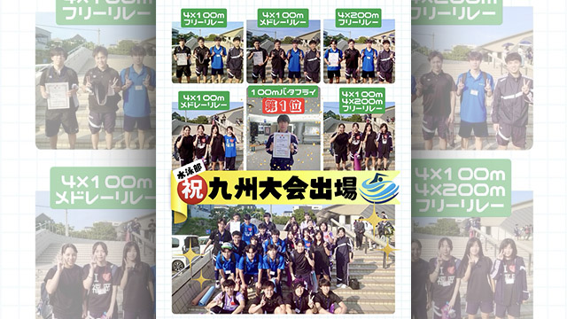 令和7年5月31日・6月1日に福岡市立総合西市民プールで行われた令和7年度福岡県高校総体水泳競技選手権大会兼第73回全九州高等学校水泳競技大会予選会において、本校1年生の中野蕾樹さんが男子100mバタフライで第1位に輝きました。 その他、個人2種目、リレーにおいては男女とも全種目で九州大会進出を決めました。 九州大会は7月18日~21日にかけて宮崎県で開催されます。 応援よろしくお願いします。