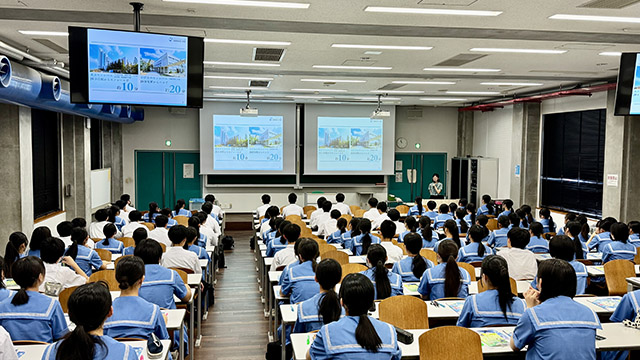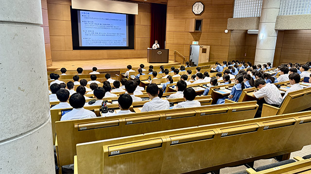高等教育段階におけるデジタル等成長分野を支える人材育成に向けて、校内でも様々な事業を進めています。その取り組みの一環として、8月20日(水)、1学年が大学で講義を受け、最先端の情報技術について学びました。