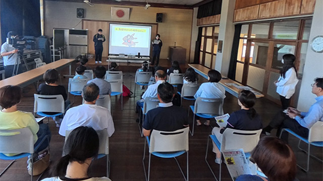 史学部は今年も忙しい夏を過ごしました。まず7月30日(水)には嘉麻市教育委員会からの依頼により足白地区の公民館で「出前講義」を開催し、当日は地元の小学生約10人と地域の方を対象に「嘉麻市馬見地区に残る源為朝(ためとも)一族の遺跡と伝承」というテーマで、本校史学部部長と副部長がわかりやすく講義を行いました。時折クイズ形式で問いかけ、楽しく地元のすばらしさを伝えられたと思います。