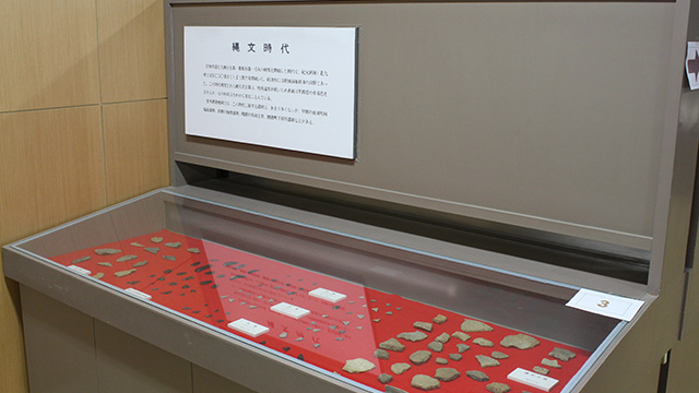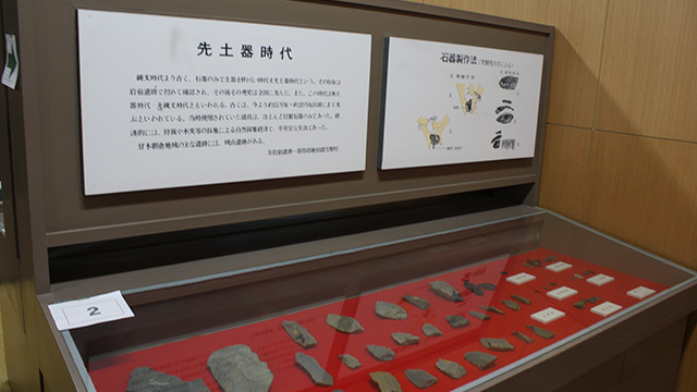 展示されている文化財は、先土器時代から縄文~弥生時代にかけての石器・土器を中心に古墳時代の勾玉・耳環などの装飾品や埴輪など。