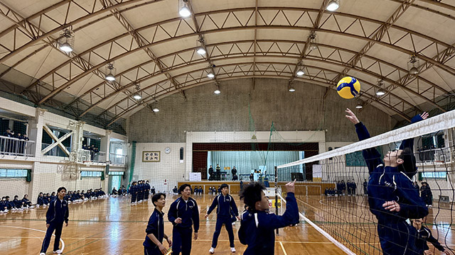 令和8年3月17日(火)、春季クラスマッチが行われました。 晴天に恵まれ、絶好のクラスマッチ日和でした。 1年生は体育館でバレーボール、2年生はグラウンドでソフトボール(男子)とドッジボール(女子)で戦いました。今年度最後のクラス対抗行事で、一年間をともに過ごしたクラスメイトへの応援の声もひときわ大きく、白熱した試合が繰り広げられていました。 優勝チームの皆さん、おめでとうございます。