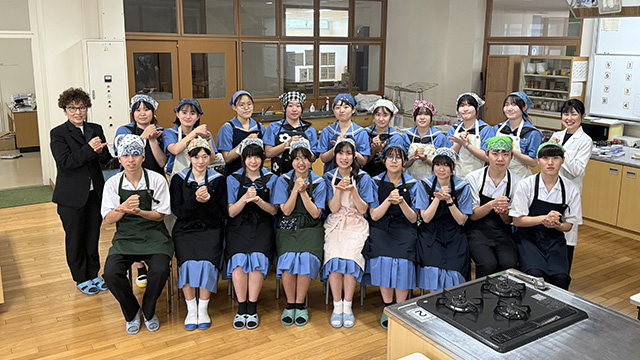 私たち食物部の活動の目的は、料理の基礎知識や技術を習得して、仲間と協力しながら料理やお菓子を作る楽しさを学ぶことです。月に1~2回と少ないので、運動部と兼部をしている人もおり、気軽に部活をすることができます。部員の中には料理をすることが苦手な人もいますが、部員の皆で力を合わせて楽しく活動を行っています。