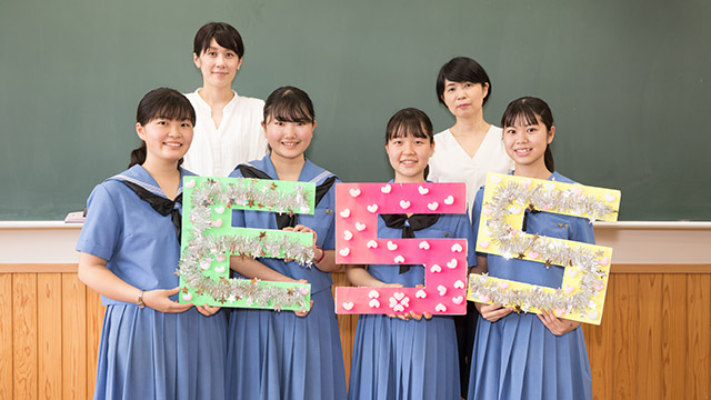 生徒昇降口の掲示板に『English board』を作成し、英語に親しんでもらうように企画しました。