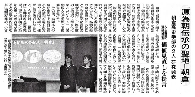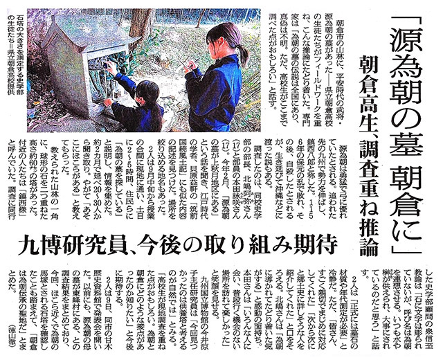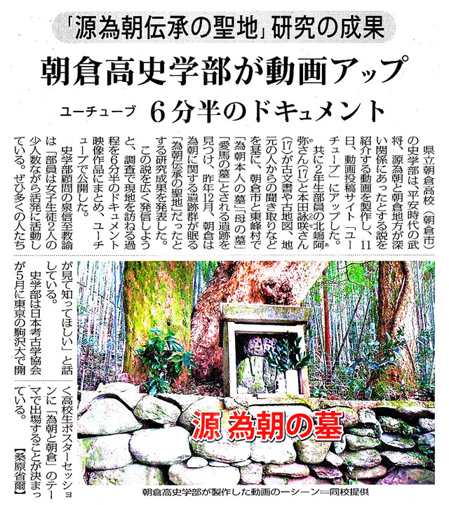 主な内容は8月の全国高等学校郷土研究発表会で「優秀賞」を受賞したことと、24日にピーポート甘木で開催される史学部研究発表会で発表する内容の紹介となっています。