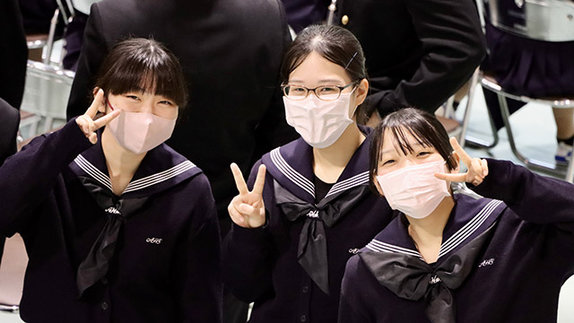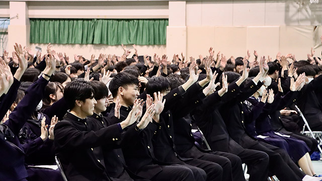 令和8年2月27日(金)、朝倉高校の恒例行事「予餞会」が行われました。 卒業を目前に控えた3年生へ、1・2年生の有志の皆さん、そして各部活動の後輩たちから感謝と激励、送別の想いを込めたエールが贈られました。 受験に向けて日々努力を重ねてきた3年生も、この日ばかりは心から楽しそうな笑顔を見せてくれました。 3年生の皆さん、いよいよ新たなステージへ。これからの活躍を心から応援しています。