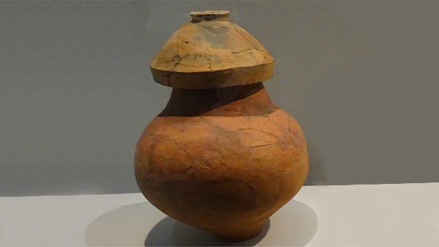 弥生時代の北部九州では、初めから棺として大型の甕(かめ)をつくり、遺体を埋葬する甕棺(かめかん)葬が行われた。本品は甕棺(かめかん)葬が行われ始めた頃のもので、かめではなく壺(つぼ)を用いている。