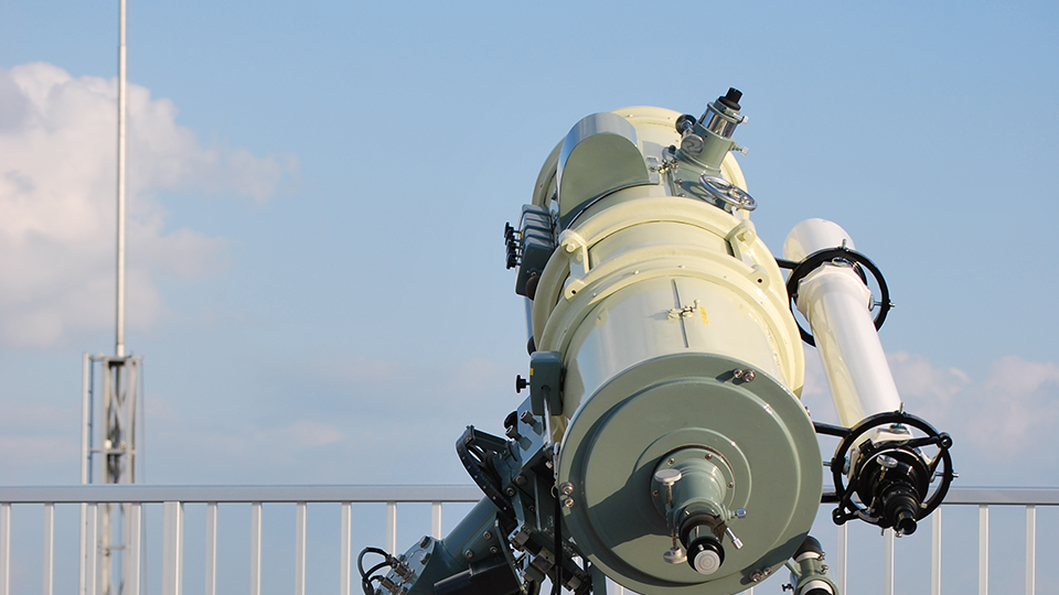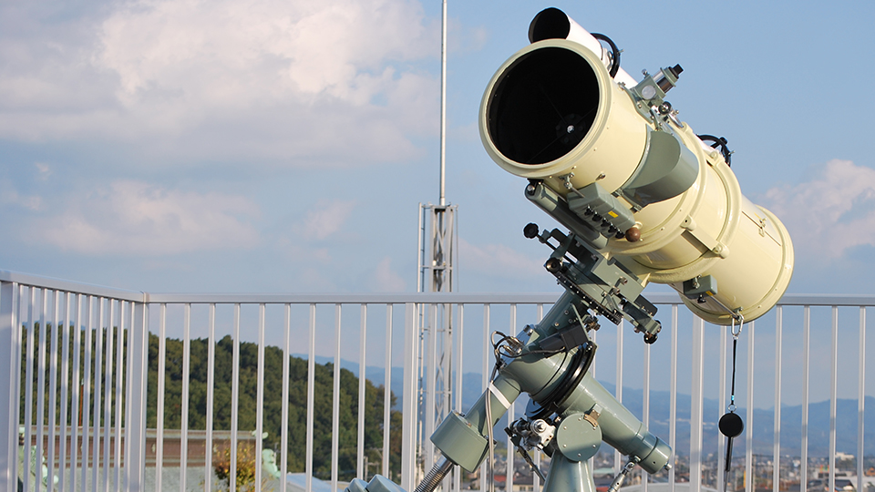 県下で唯一また九州でも数少ない本格的な天文台です。中には口径30cmの反射式望遠鏡が設置されています。