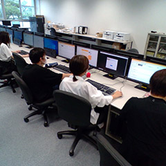 月・水・金の週3日、パソコン室でワープロや表計算の検定資格へ向けての練習やプログラミングをしています。自分で目標を設定しがんばっています。