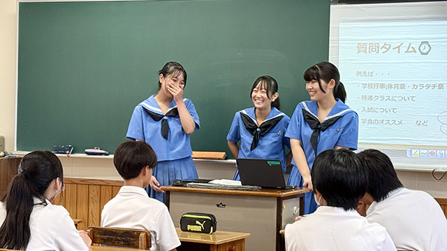 中学生体験入学、たくさんのご参加ありがとうございました。 9月20日(土)に第1回目、10月18日(土)に第2回目の中学生体験入学を実施し、中学生と保護者合わせて約650名の皆様にご来校いただきました。限られた時間ではありましたが、全体会の学校紹介等をはじめ、本校の先生方による体験授業、生徒たちによる交流会や部活動見学を通して、朝倉高校のことを少しでも理解していただければ幸いです。 参加していただいた皆様、ありがとうございました 来年度のご入学、心よりお待ちしております!