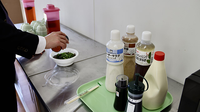 ・ご飯・ネギ・ドレッシング・ソースはセルフサービスです。
